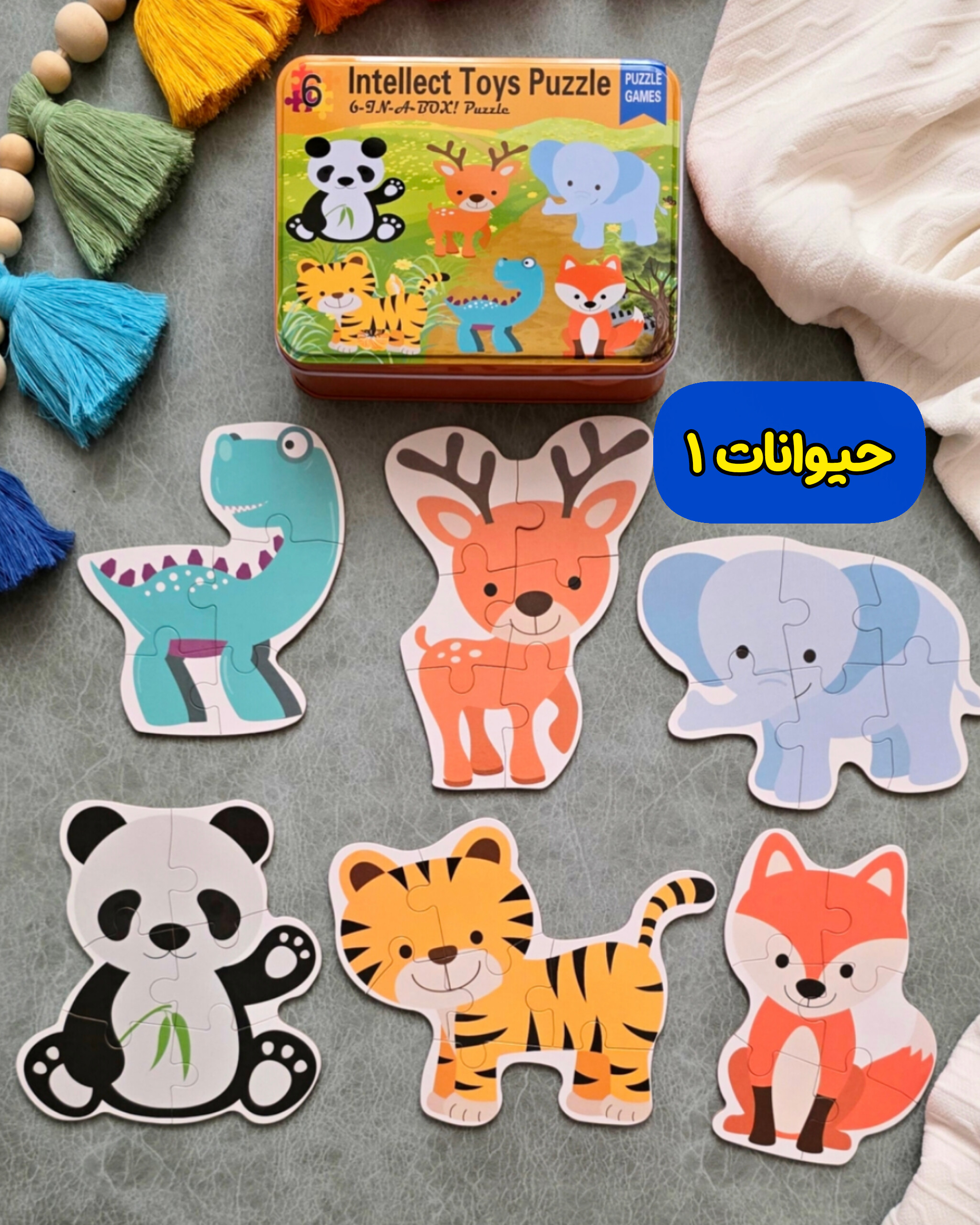 پازل چوبی ۶ در ۱،پازل چندتکه کودک،قوطی فلزی۲۸۵٬۰۰۰ تومان